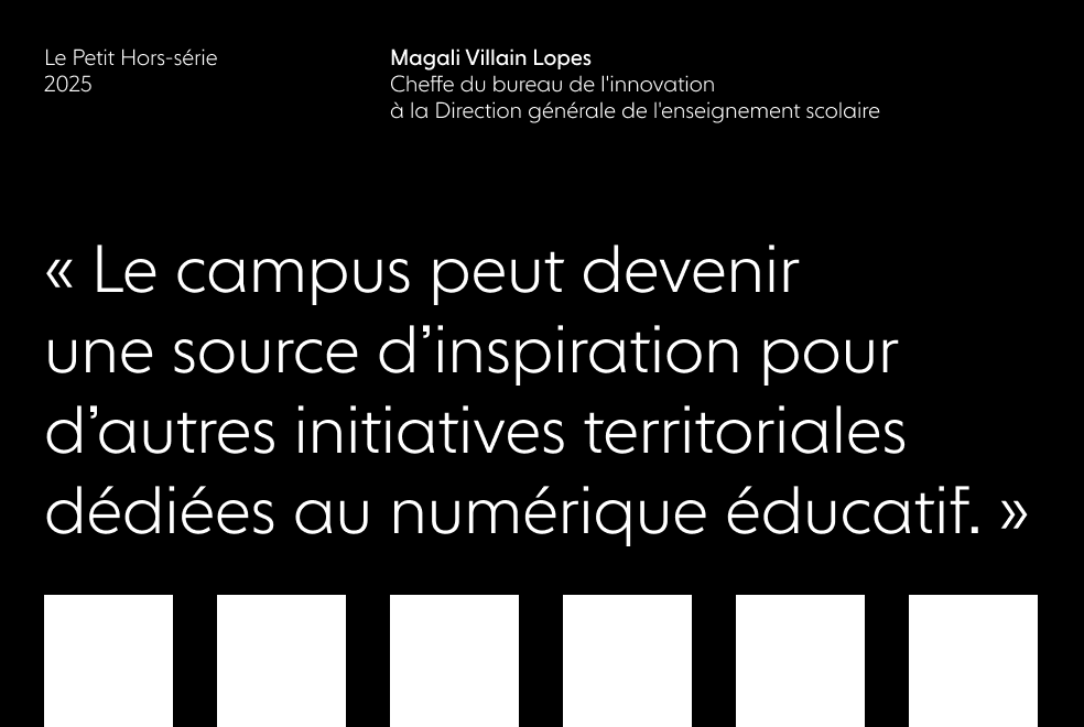 Dans le cadre de son numéro spécial sur le Campus Numeria, idruide a interviewé Magali Villain Lopes, Cheffe du bureau de lʼinnovation à la Direction générale de lʼenseignement scolaire.